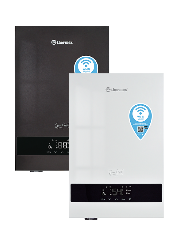 Интеллектуальное управление позволяет задавать автоматические и пользовательские настройки, в том числе программирование по таймеру. Для регулировки работы из любой точки мира предусмотрен встроенный модуль Wi-Fi Motion и полноценное дистанционное управление через приложение Thermex Home, а также работа через голосового помощника Алису. Возможно подключение проводных и беспроводных комнатных термостатов.